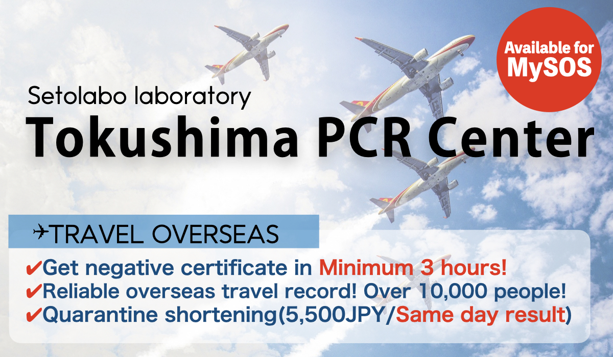 There is “Tokushima PCR travel center” in tokushima PCR center. You can get negative certificate when you go overseas. After you take PCR test, you can receive PDF negative certificate at Kansai International Airport or Narita International Airport by email.